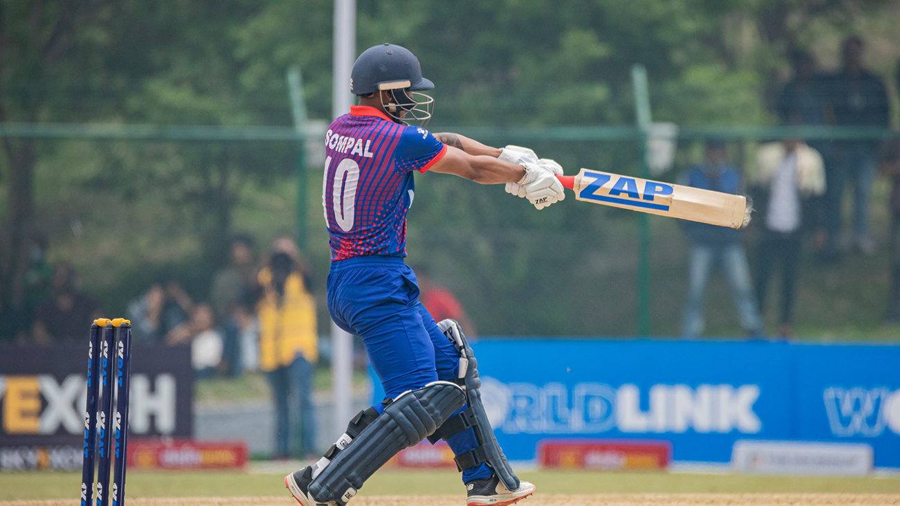 He got out scoring 28 runs off 46 balls. They were under pressure after losing 3 wickets in the beginning. Nepal scored 14 runs in 1.4 overs and lost their third wicket.